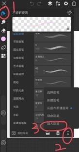 2. 开启画世界pro,轻点左上方的铅笔图标,接着选中右下角的三条横杠图标,随后找出导入画笔这一选项。