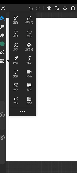 4. 顶部工具栏涵盖撤销、图层管理以及系统设置等核心功能。在这些功能里,图层功能极为强大,它支持锁定、复制、新建、合并等各类操作,属于进阶学习的重点模块。
