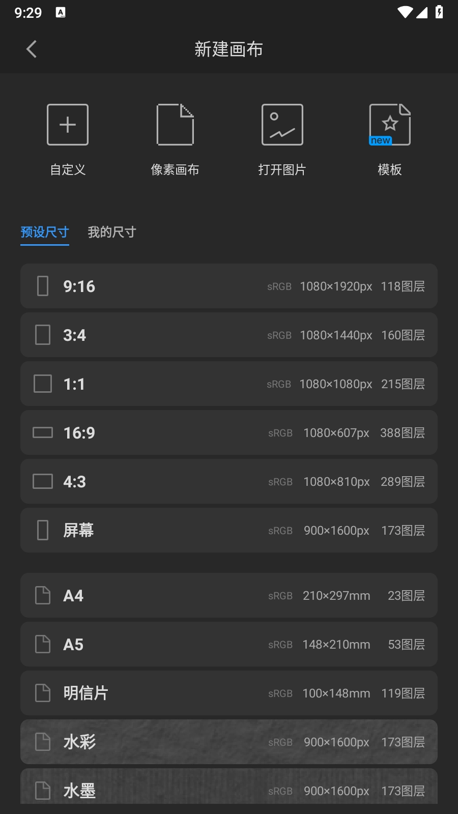 2.如需新建项目,点击底部【+】按钮即可进入创建新画布页面,具体界面如下图所示