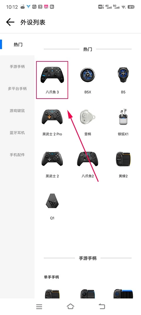 6、通过手游手柄、多平台手柄、游戏键鼠、蓝牙耳机、手机配件等多个列表我们可快速寻找自己设备