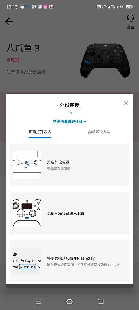 3、蓝牙与手柄连接后,进入飞智游戏厅的外设管理,开启按键映射,连接手柄