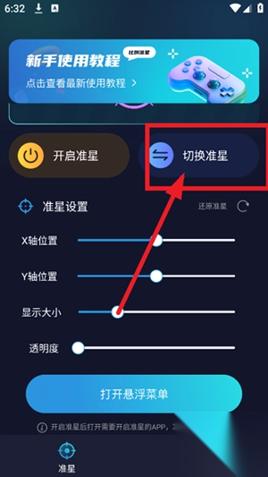 2. 开启悬浮窗功能后,便可着手设置准星样式。