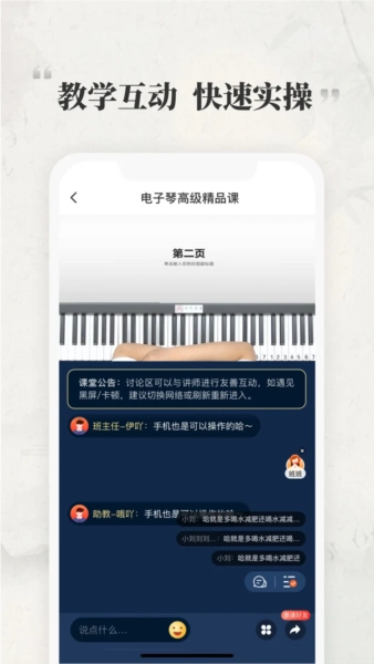 助力用户循序渐进地掌握读谱、音程、节奏、节拍等基础乐理知识,强化各类指法与技法,精通数十首经典乐曲的弹奏诀窍。