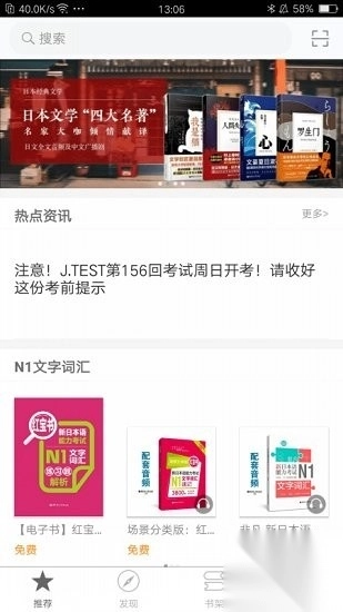 除了题库之外,还有N1考试资讯、N1考试文字词汇讲解、日本文学小说和日本文化介绍,让你轻松备考、爱上学习!