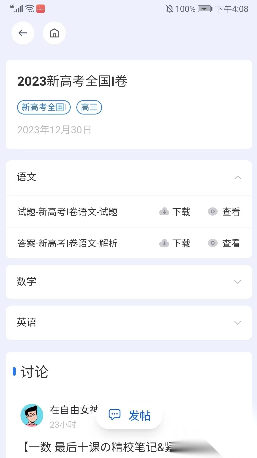 2、可看到全部的试卷资料,选择需要的试卷即可,这里以新高考全国I为例,