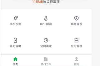 3、除一键清理功能外,在主页栏目中,你还能看到“手机加速”与“空间清理”功能。这些功能同样可助力用户加速、清理手机。而“应用管理”功能,能帮你卸载不必要的应用程序。整体而言,这些功能相当不错,如下图所示: