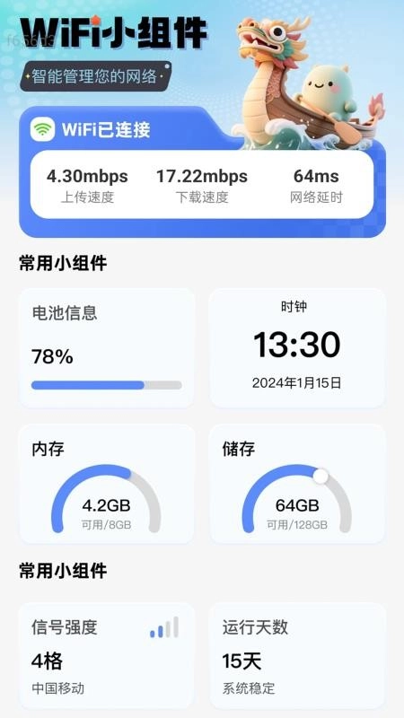 对于所需的WiFi小组件,能够随心挑选并使用,如此一来,就能便捷地添加所需小组件,同时查看常用的小组件。