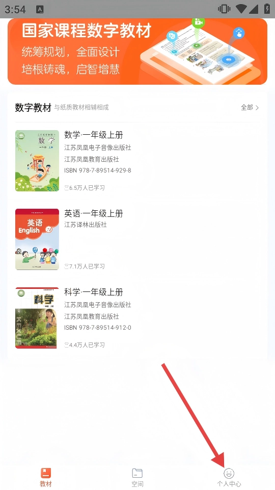 1、教材首页点击底部【个人中心】,进入用户信息页面。