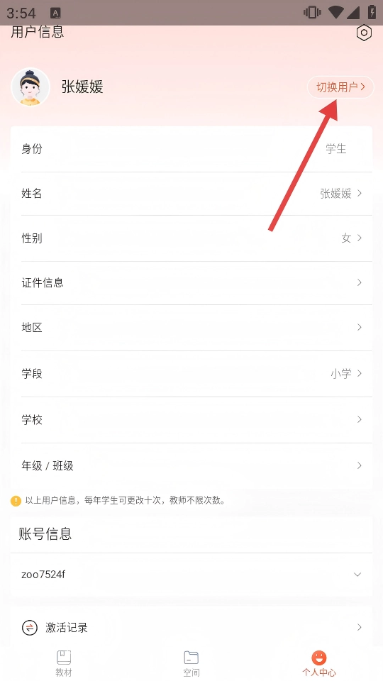 2、用户信息页面点击【切换用户】,进入选择用户页面。