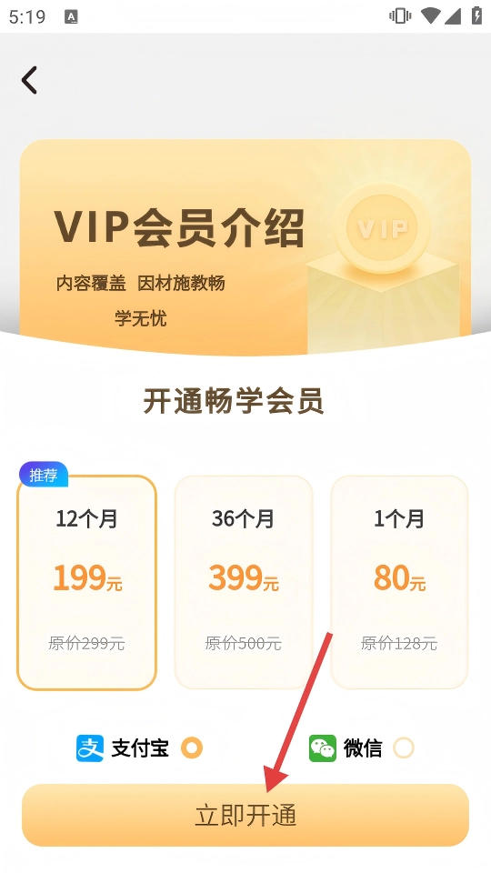 4、选择会员时长后,点击页面底部的【立即开通】按钮,完成支付解锁课程内容。