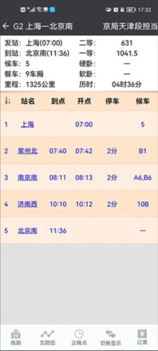 3、双击当前车次,可显示该车的所有停靠站信息。