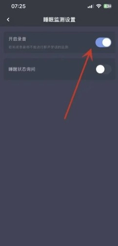 3、在界面中将开启录音的按钮打开。