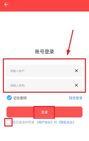 请输入账户与密码,勾选“我已阅读并同意《用户协议》和《隐私协议》”,随后点击“登录”按钮,便可完成操作。