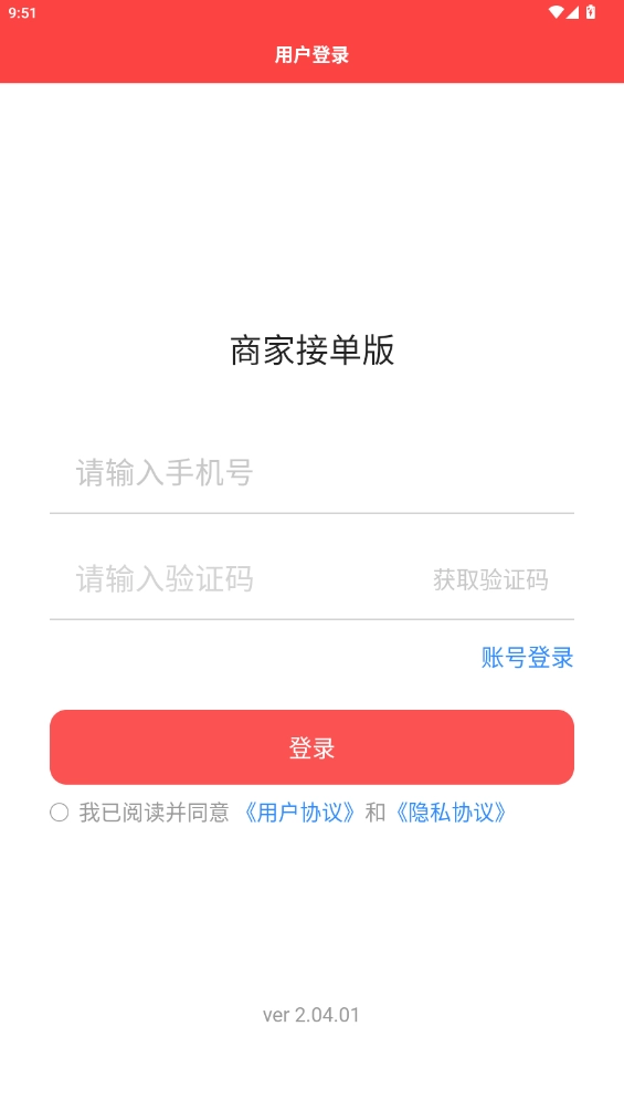 请下载并安装新商家接单版APP,安装完成后打开该应用。首次打开时,需先同意并使用App隐私政策。
