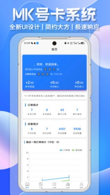 MK号卡app订单管理系统,是专门为号卡行业量身定制的推广与分销管理系统。它能够让订单数据实时刷新,与运营商直接签约,操作简便,极易上手。我们全方位守护每一位合作伙伴,助力他们达成高效增长,让号卡行业的推广与分销变得更为简易和高效。