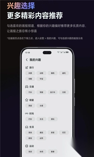 1在兴趣选择时,将会出现更多推荐内容。只需勾选您喜爱的图片频道,系统便会依据您的兴趣进行精准推荐。