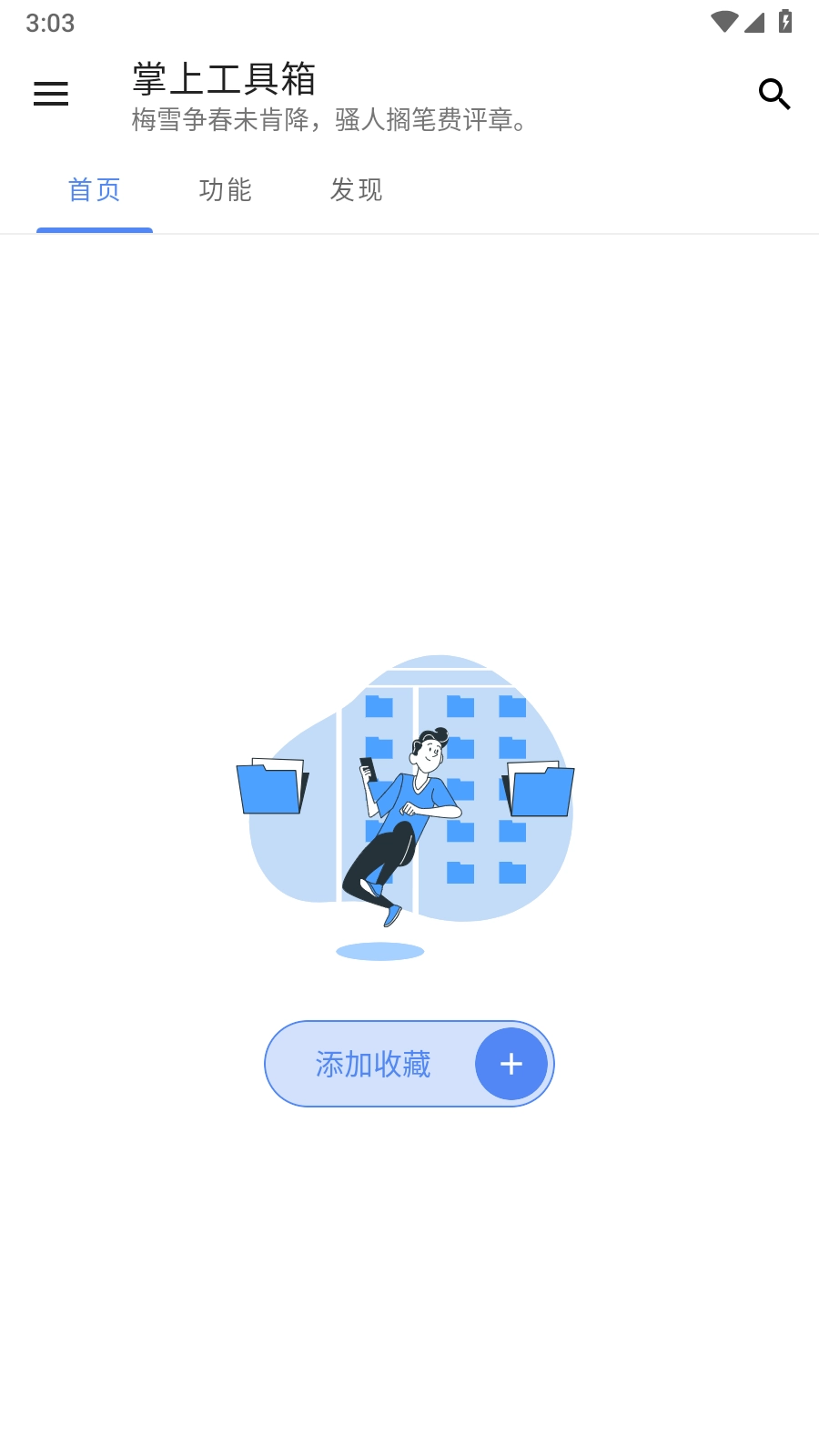 1首先,打开掌上工具箱App,进入首页后,点击“添加收藏”选项。