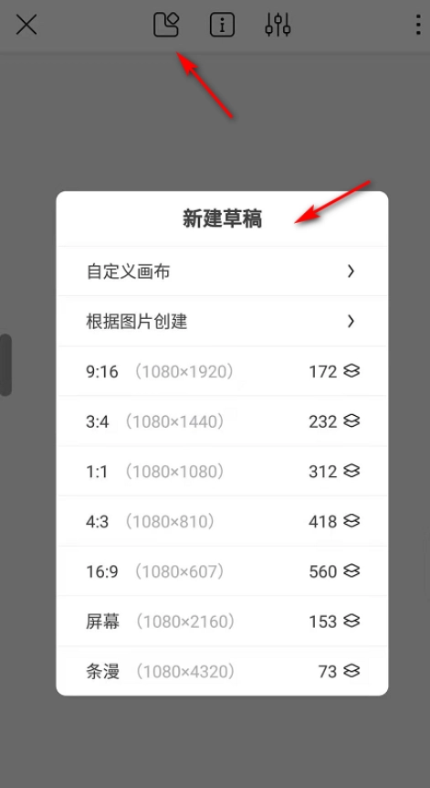 3. 在新建草稿的界面里,能够对画笔大小进行选择。既可以挑选预设好的尺寸,也能够自行定义尺寸。与此同时,在上方的工具栏内,有一些常用命令可供使用。