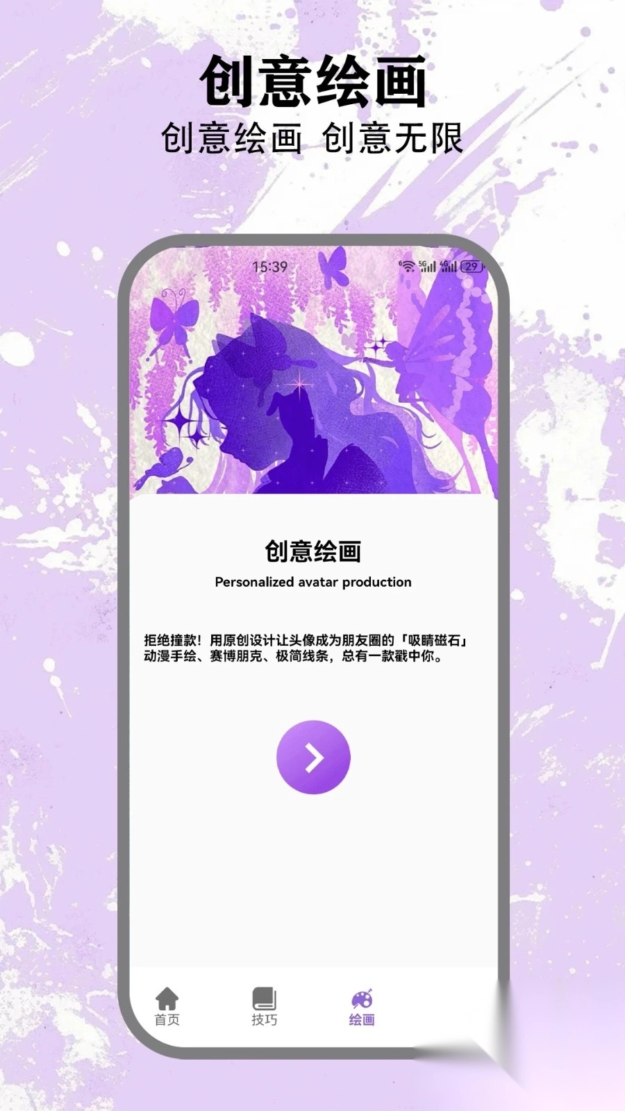 3、于绘画页面,你能够体验原创设计,同时了解其中不同的绘画技巧。