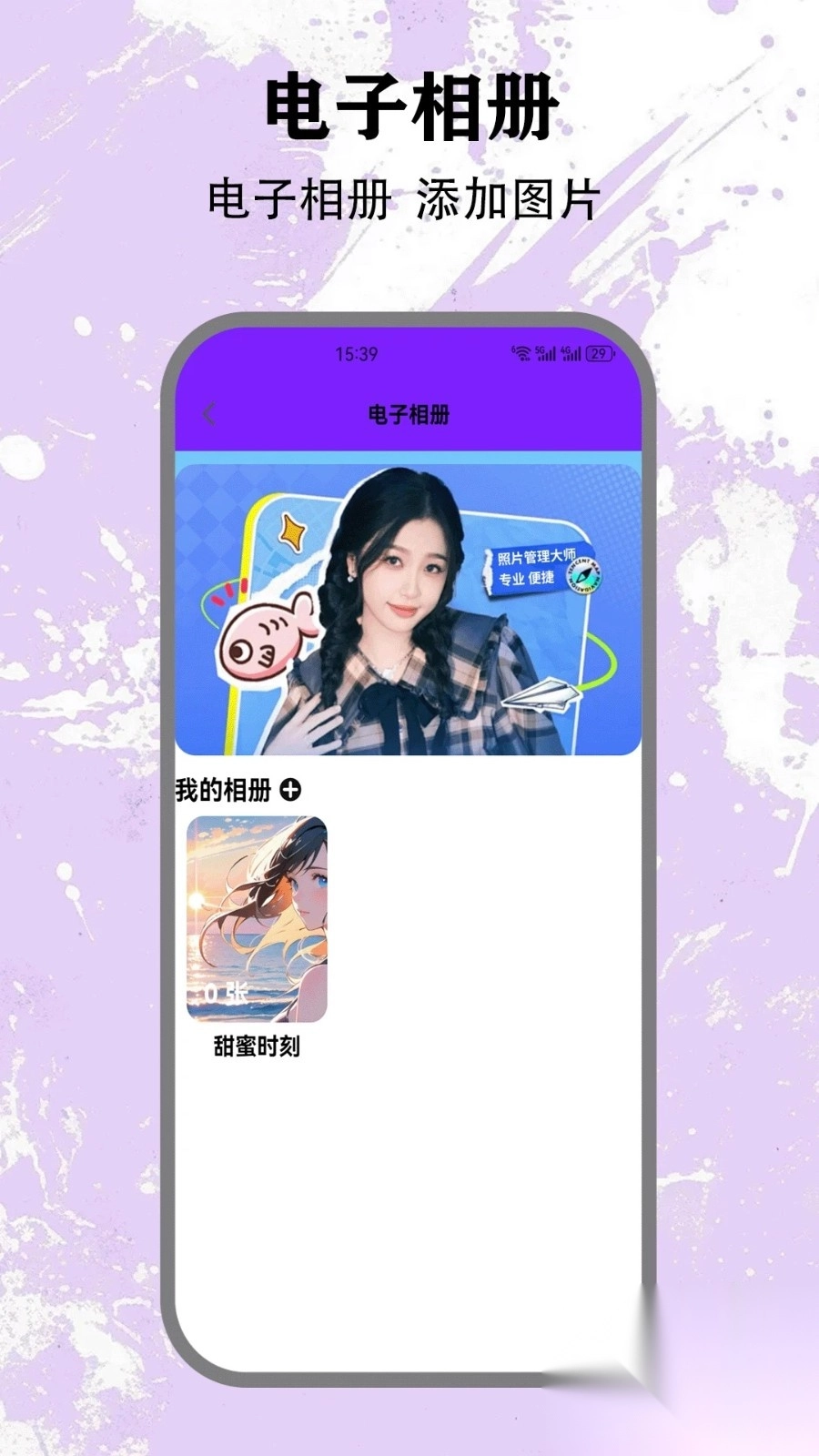 3、电子相册制作,用户可自定义动态排版并添加背景音乐。