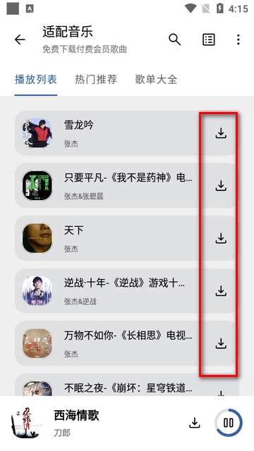 6、在播放页面也可以直接下载歌曲。