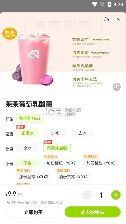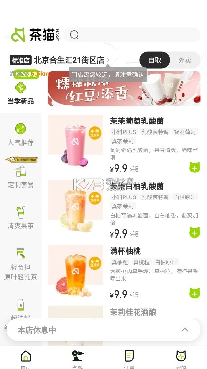 2、选择点餐,选择各种不同的饮品进行购买