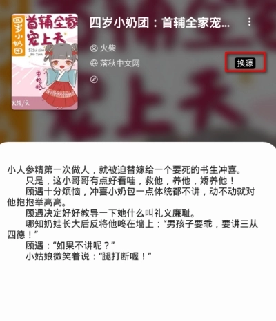 3、点击进入详情页面,在页面右侧会看到一个“换源”小图标,点击该图标即可。