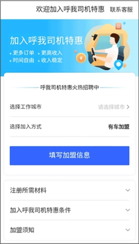 2. 打开招募页面,点击“成为呼我司机”选项,随后依照步骤进行操作,就能完成加盟。
