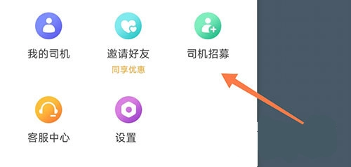 1、同样是在呼我出行界面左上角弹出的选框里,点击司机招募选项。
