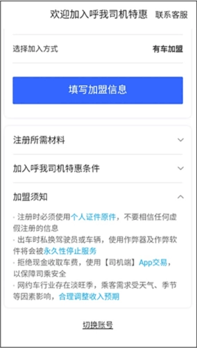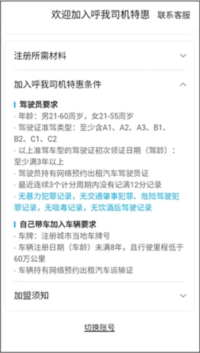 4、也能够查看加入呼我司机特惠所需条件,判断自身是否符合。