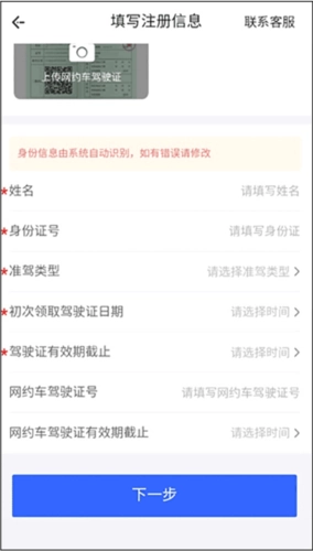 7、接下来,您能够填写个人基本信息以完成注册,点击“下一步”,填写车辆信息后,便会注册成功。