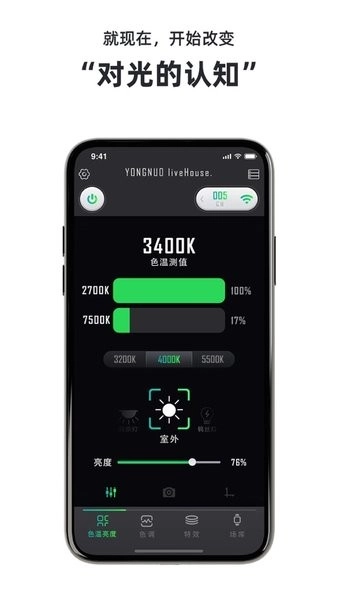 永诺摄像灯 app 是专为持有相关产品的用户精心打造的摄像灯控制软件,实用性极强。软件提供多种颜色任你挑选,在色彩调节上支持 RGB 和 HSI 模式。用户能快速选择各类场景,像室内、室外、夜景等,直接在平台获取相应场景服务。此外,它还支持场景预设功能,便于用户快速调出补光场景。快来下载体验吧!
