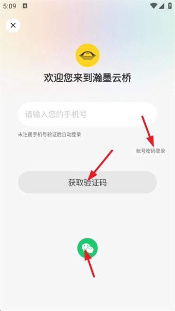 3、输入手机号并获取验证码随后点击登录即可,也可以用微信一键登录;