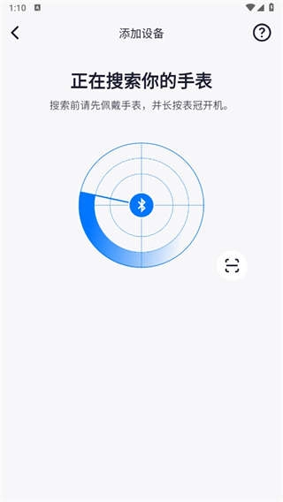 3、当出现这个页面时,搜索即已完成。此时,我们还能点击右下角的【扫描】,扫描我们手表的二维码。