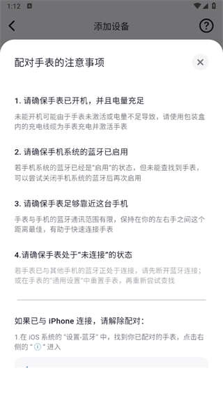 4、配对手表的【注意事项】见下图,若无法配对,建议进行检查。