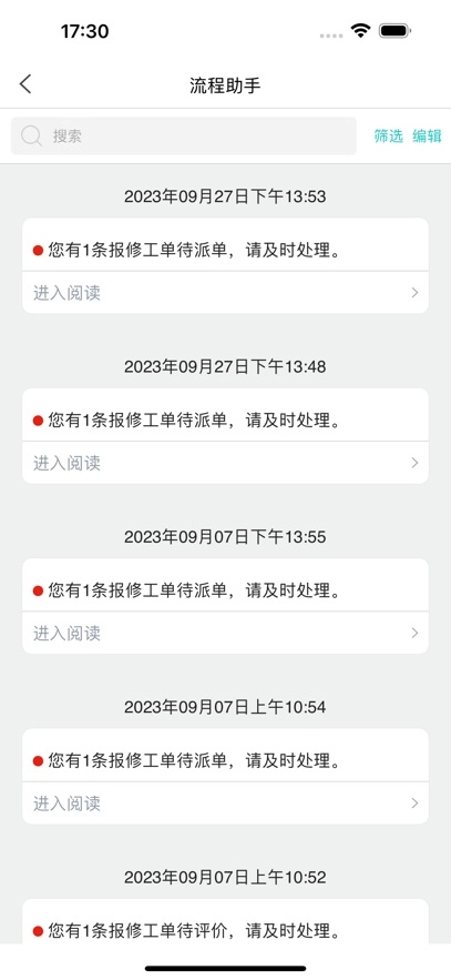 3、查看消息,知悉所有推送消息的详细内容,以此掌握工作情况。
