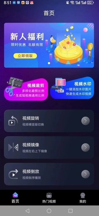 2. 轻点“视频剪辑”选项,将手机里的视频上传,随即进入编辑页面,展开快速的剪辑工作。