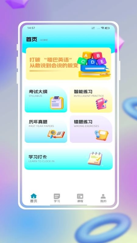 2、在首页,可以看到许多学习工具,还能够详细查看考试大纲并进行刷题。