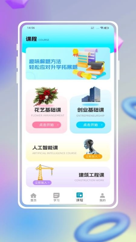 4、进入学习板块后,你能够自主挑选相应课程,轻松开启学习之旅,操作简单便捷。