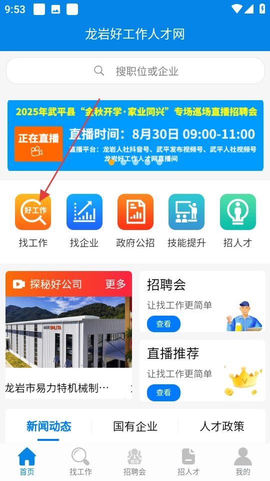 1. 点击“找工作”选项,从而进入职位列表页面。