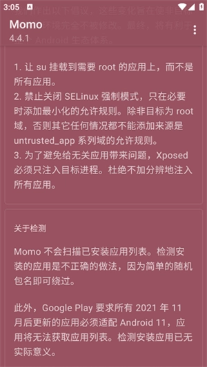 Momo环境检测安卓版作为一款手机系统安全与性能优化工具,可助力用户全方位知悉并管理手机的系统环境。它能够精确判断手机是否已被root,或是安装了Xposed框架,同时为用户及时提供安全预警以及相应的解决方案。
