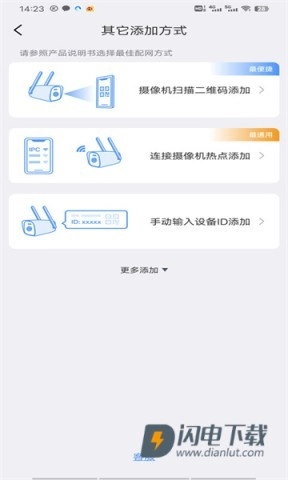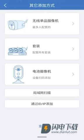 3、用户添加摄像机有多种方式可选,例如扫码、连接摄像头的WiFi热点,也可以手动输入设备ID来完成添加。