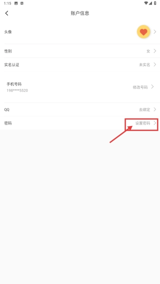 4、进入账户信息页面后,点击“设置密码”选项,执行密码设置的相关操作。
