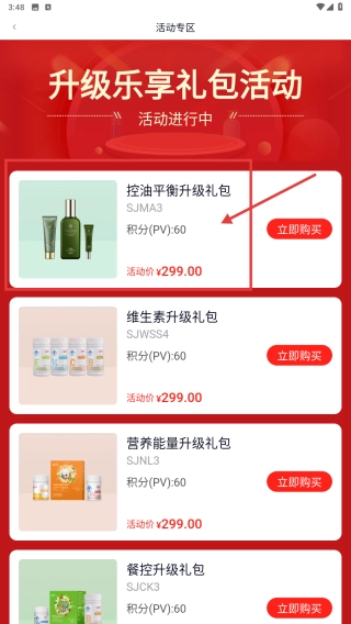 3、于活动专区页面,轻点控油平衡升级礼包,随即进入此礼包的商品详情页面。