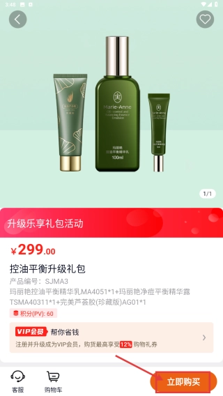 4、于商品详情页面,点击“立即购买”按钮,执行控油平衡升级礼包的购买操作。