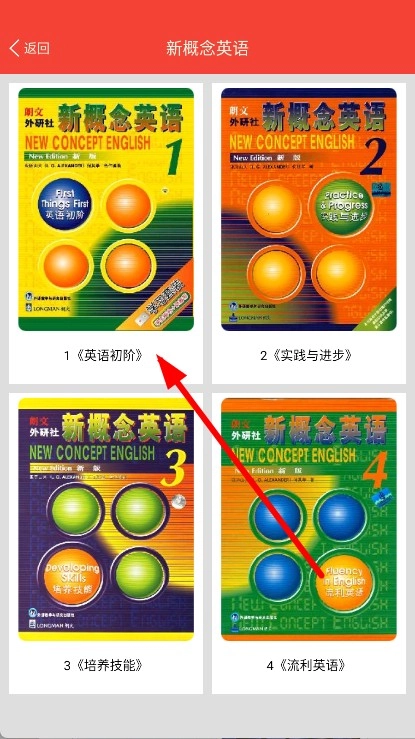1首先,开启新概念英语天天学应用。随后,在其中挑选教材,进而进入到课程选择的页面。