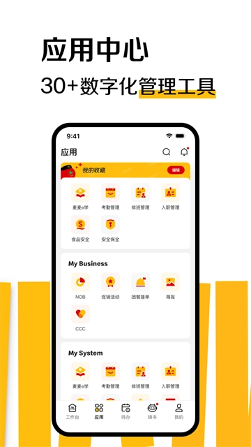 2、应用中心:拥有30多款数字化管理工具。