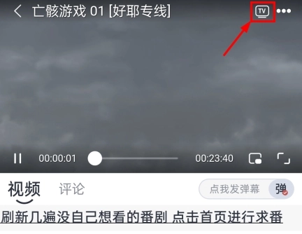 2、在播放界面的右上角即可进行投屏设置,需留意手机和投屏设备需连接至同一个WiFi。