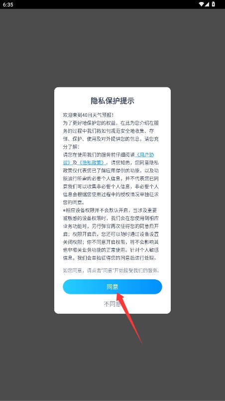 1首次使用时,需阅读平台的服务条款及隐私政策,确认无误后点击“同意”按钮,方可进入应用。