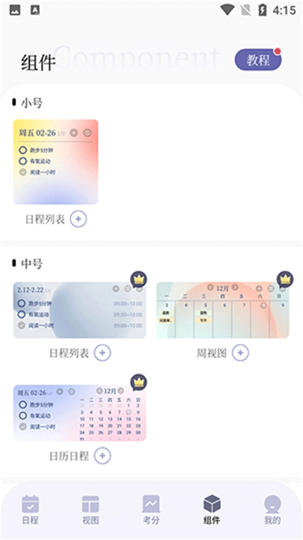 4、轻点组件栏,将目标与日程添加至桌面,以便随时查看。